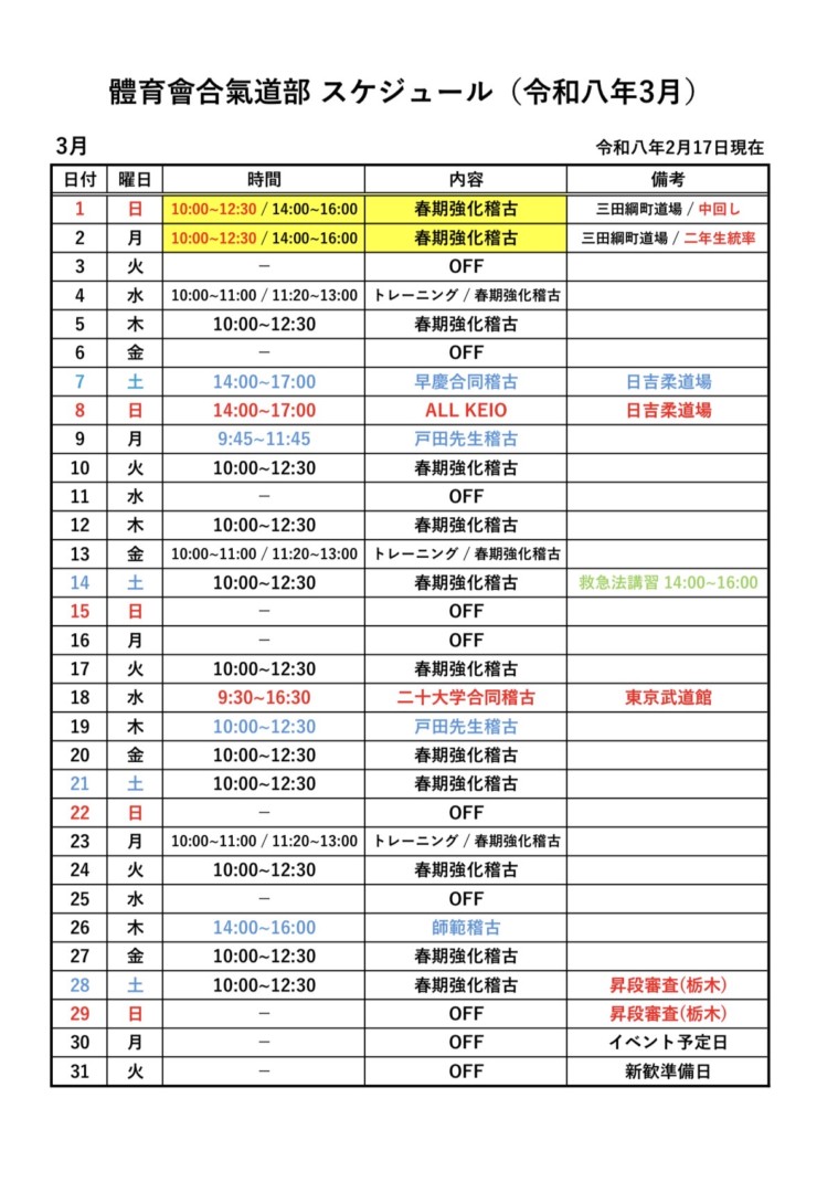 関西遠征も無事に終了し、いよいよ本格的に春期強化稽古が始まります。